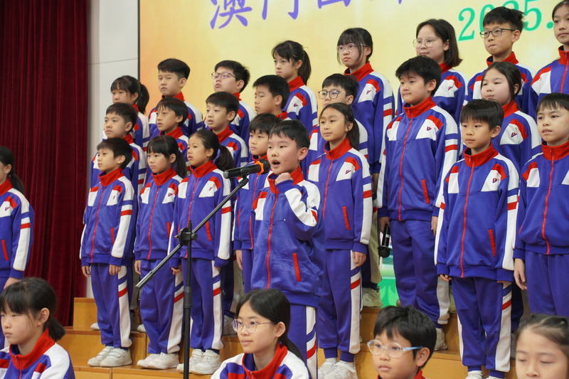 節目表演環節精彩紛呈。高年級學生的牧童笛合奏《散步》,以悠揚的笛聲傳遞出澳門社會的和諧與活力。五年級學生帶來的《中國心·七子情》綜合表演,將深情獨誦與代表合唱完美融合,抒發了澳門與祖國血脈相連的深厚情感,將現場氣氛推向高潮。