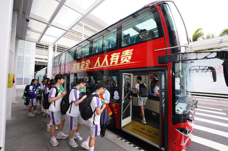 兩校師生一同乘坐「國安號」港珠澳大橋雙層巴士,沿途近距離感受超級工程的雄偉壯觀,在行走中感悟國家發展成就與國安教育內涵。隨後,全體師生前往藍海豚島,開展主題研學與互動交流。同學們熱情交流、積極互動,在輕鬆愉快的氛圍中分享心得、結下友誼,充分展現了青年學子朝氣蓬勃、奮發向上的精神風貌。活動中,我校廖潤東同學接受了中央電視台與澳廣視的採訪,廖同學表示自己要努力學習,為祖國為大灣區的建設添磚加瓦,更要為一國兩制的行穩致遠貢獻自己的力量。