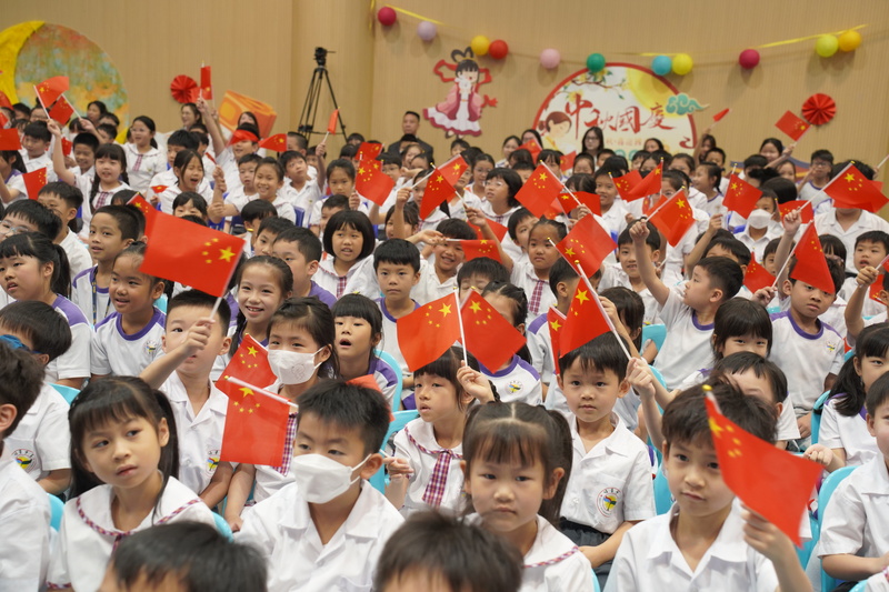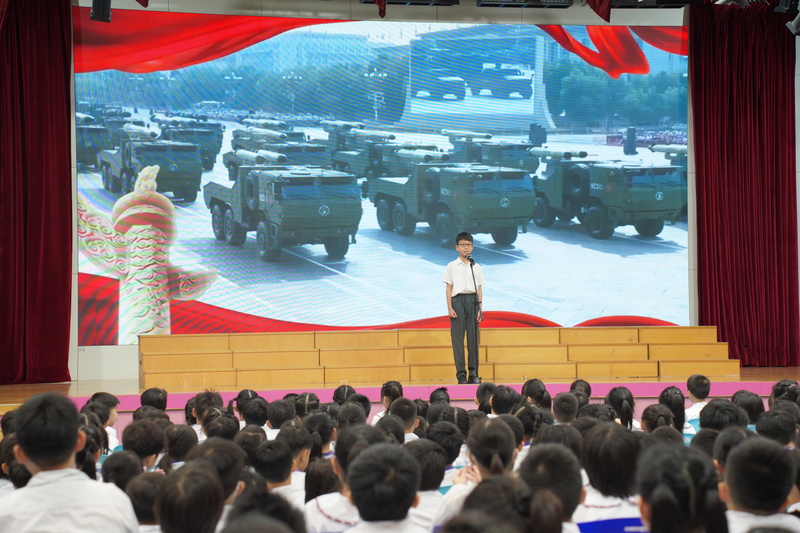 活動伊始,莊嚴的升旗儀式和激昂的校歌聲響徹校園。在幼稚園,李麗珊主任通過生動介紹了祖國的壯麗山河與國防建設,並講解了十月一日國慶日的意義,勉勵同學們心懷感恩、銘記歷史、珍惜和平。幼高年級學生表演了《太爺爺的軍功章》話劇和《山河錦繡,家國同慶》少兒演說,以及師生共同演繹律動節目《強軍戰歌》,展現軍人勇於挑戰、堅毅不屈的精神風貌。活動最後以全場大合唱《童聲裡的中國》溫馨收尾,現場氣氛熱烈,學生積極投入。