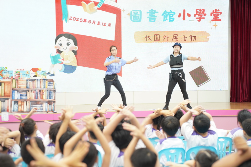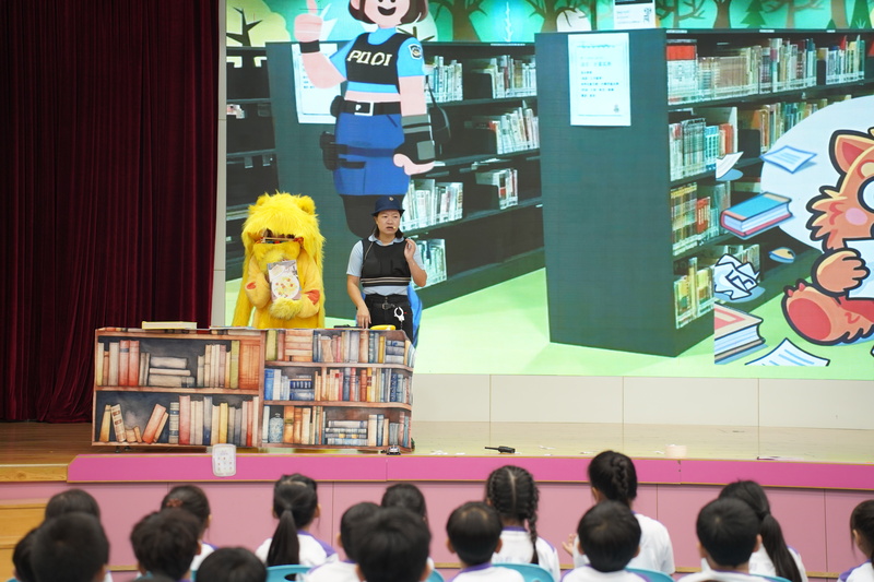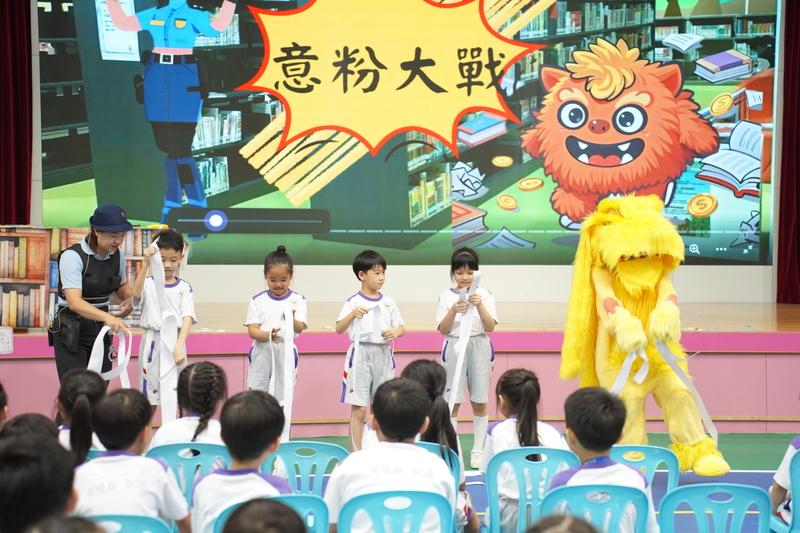 緊接着上演的「圖書館怪事話劇」將氣氛推向高潮。劇情講述圖書館遭到怪獸破壞,原來是因為他不懂得如何借書,竟將喜愛的圖書「吃掉」!在「警察」與「培華小助手」聯手破案的過程中,協會人員巧妙帶出借書流程與方法,並介紹了「一戶通」及「身份證」的借閱用途,以及「我家圖書館」的便捷服務。生動的表演不僅逗得同學們開懷大笑,更讓原本抽象的流程變得直觀易懂,大家紛紛舉手提問,互動氣氛熱烈。