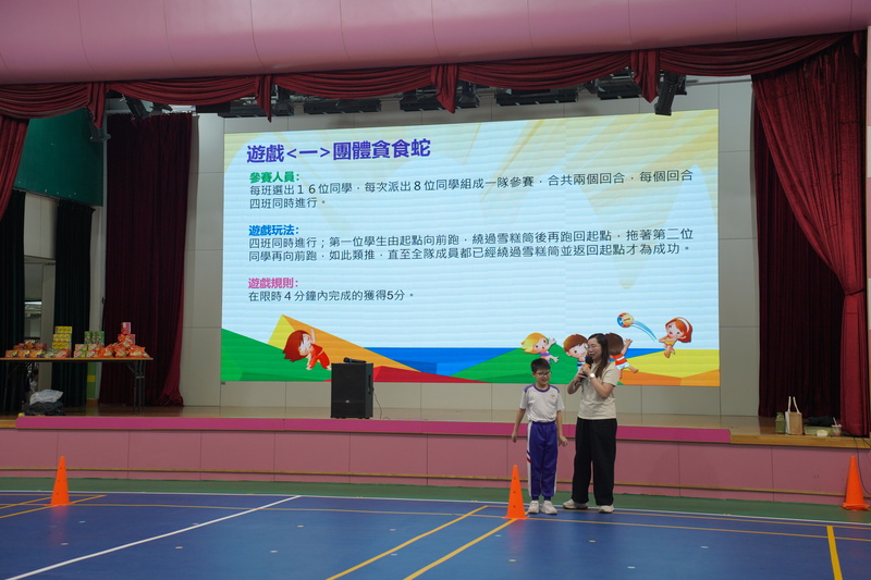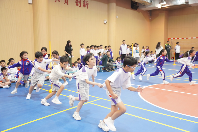 接著,遊戲環節正式開始,各班級有序分成若干小隊。在老師詳細講解規則、確保全員明確要求後,趣味角逐火熱展開。「團體貪食蛇」 既鍛煉了同學們身體協調性與反應速度,更在一次次默契銜接中,築牢團隊信任感與集體歸屬感;「毛毛蟲爬爬行」裏,小隊成員的肢體協調能力與小組配合意識在歡笑中不斷提升;「多球協力競走」考驗團隊策略,大家小心翼翼共同運送小球,步調統一的節奏裏,不時響起陣陣加油呐喊;「合力建塔」專案中,隊員們共同協作搭建積木塔,每一步都需精准配合,稍有偏差便共同調整,讓「團結才能成功」的道理深入人心。整個運動場洋溢着歡聲笑語,熱鬧而有序。