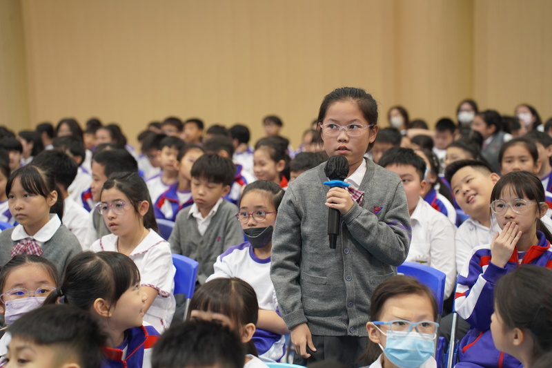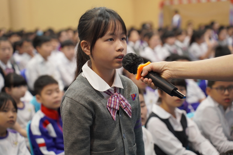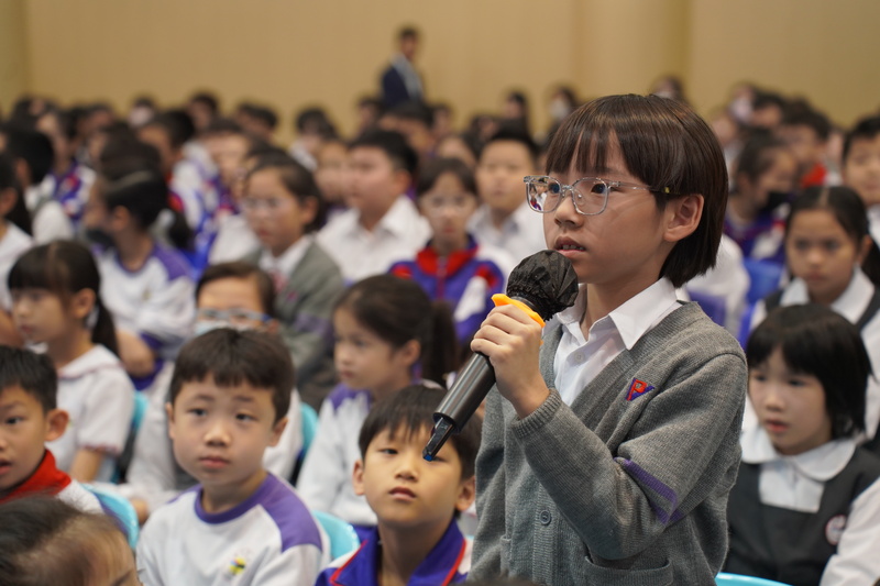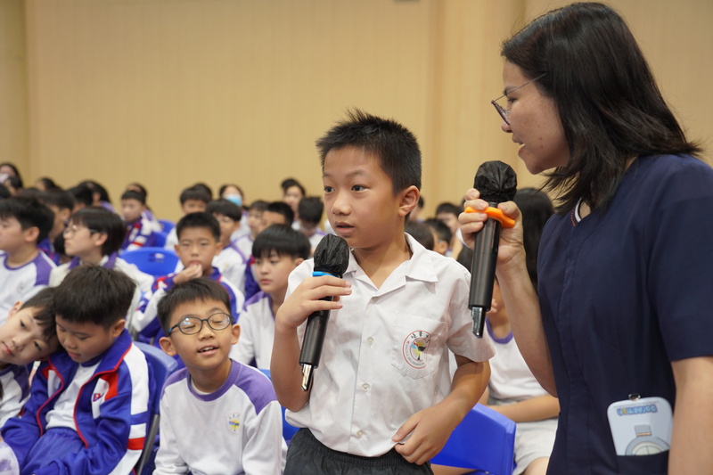 次場周會,冼美鐶老師則以趣味故事為核心開展教育。她講述小兔托尼撒謊後因“長鼻子”噩夢反思、最終認錯的故事,並搭配匹諾曹情節,讓學生直觀理解“撒謊失信任,誠實得安心”。在“誠信島探險”環節,老師提出“忘寫作業怎麼辦”、“撿到文具如何處理”等貼近生活的選擇題,引導學生互動,將抽象道理轉化為具體行為認知,激發低年級學生對誠信的興趣與初步認識。
