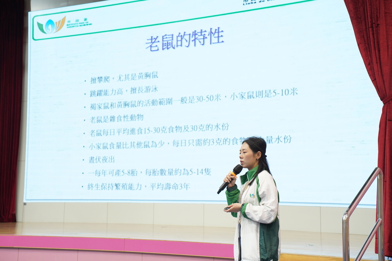 針對鼠患,呂小姐分享了實用方法,包括及時清理垃圾、密封食物以及堵好牆角小洞。同時也介紹市政署日常開展的鼠患監測和投藥工作,讓同學們知道專業力量在守護城巿環境。最後強調“防鼠為主,滅鼠為輔”的核心理念,並鼓勵大家養成良好的衛生習慣,從源頭切斷老鼠的生存條件,讓這些‘壞傢伙’無處藏身。