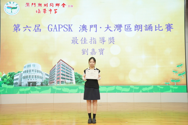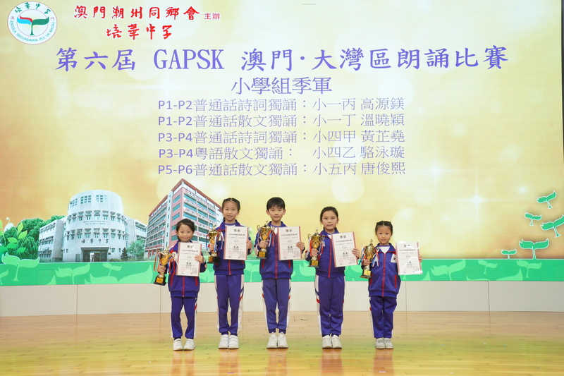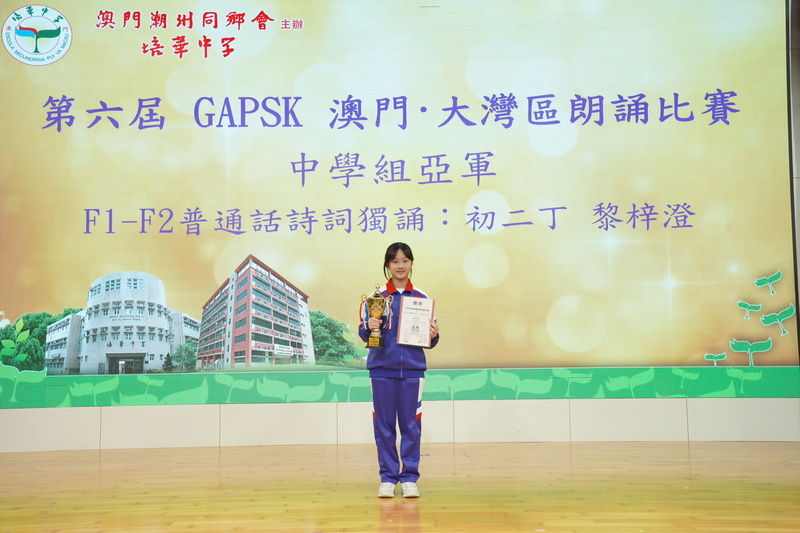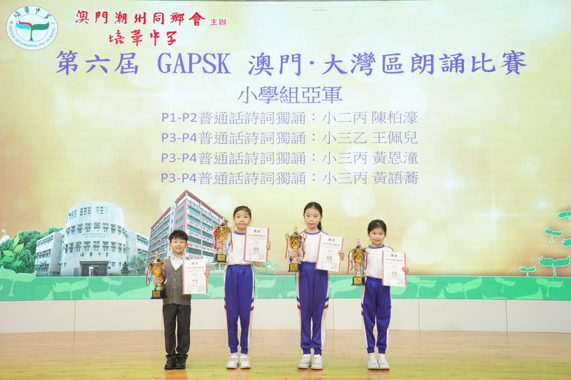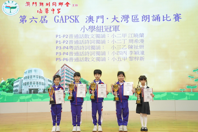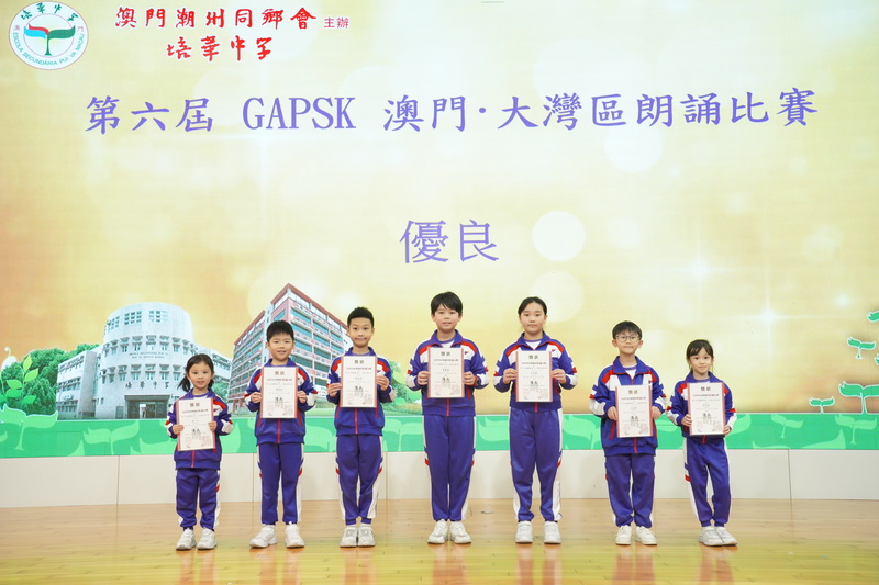 我校學生在由GAPSK與北京大學語文教育研究所主辦的第六屆GAPSK 澳門·大灣區朗誦比賽中,榮獲佳績: